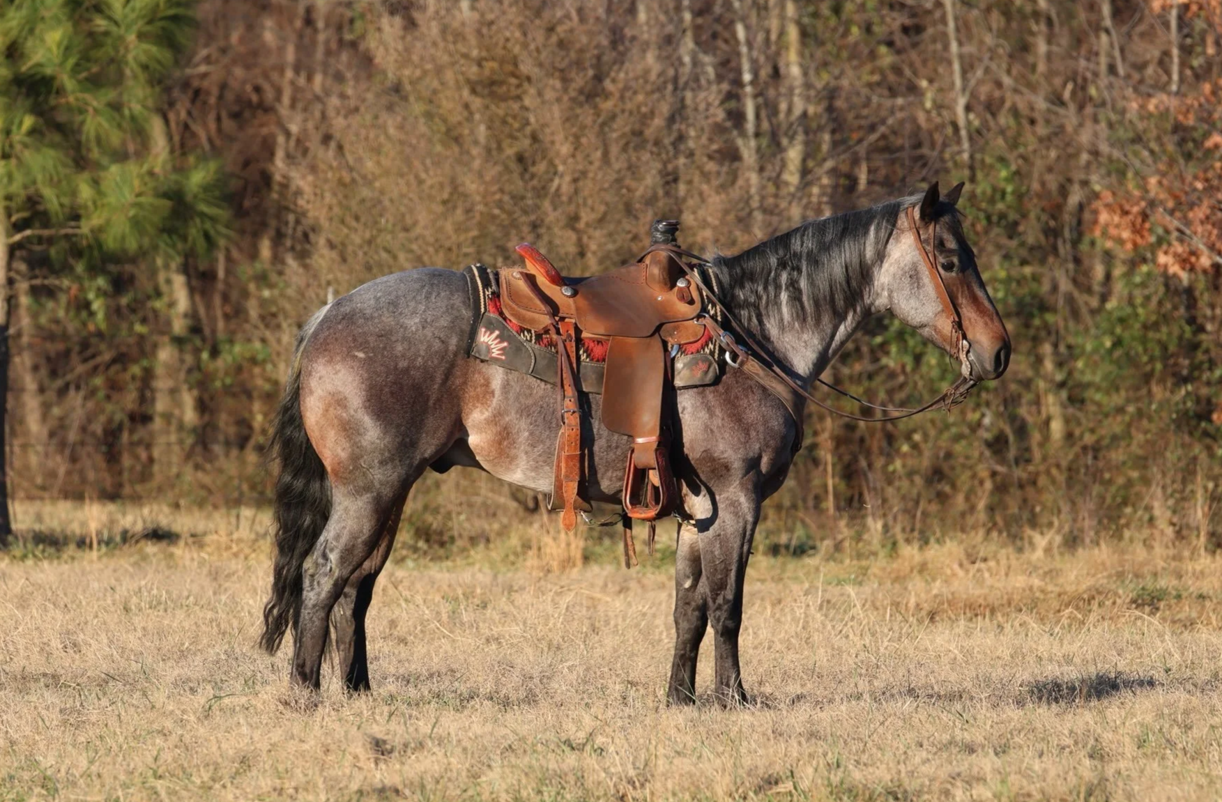 This 2021 Red Roan Gelding is an incredible and athletic horse who does it all! He loves cattle and is great to ride for work or pleasure. Whether you're hitting a local jackpot, need a dependable ranch hand, or just want a great riding horse to enjoy, he fits the bill. He’s sound, sane, quiet, comfortable, easy to handle, and ready to go! This gelding was started as a cow horse and moved to the roping pen. Bred to be a champion and will look good in the winners circle. He is eligible for numerous incentives including the Riata Buckle, and many more!
