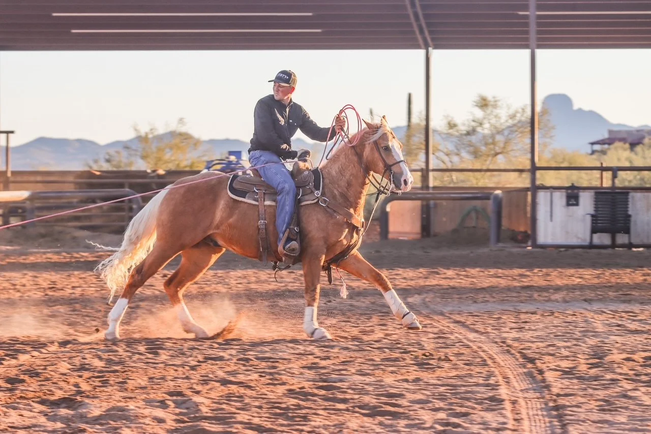 El Ganador PZ translates to “The Winner”, and rightfully so. After winning $57k+ in the barrel pen, Rolex is ready to take on his team roping job full time. He’s won countless fast times and averages with a 5 header. He’s a finished head horse ready to go under the big lights for a top roper down the road rodeoing or at the high number ropings. Never beat out of the box, natural move through a corner, all business. 9 yo gelding bred for all speed and as cowy as it gets. His total LTE is now over $63k+ between his time in the barrel pen and now heading. Easy going and gentle for anyone at home, but then it’s all game at the ropings. Rolex is that next level horse you’ve been looking for.