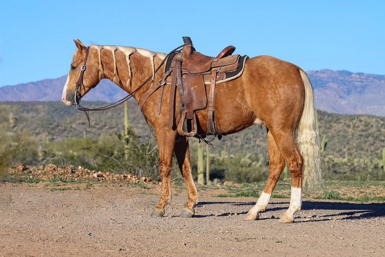 Cruz is a cute little gelding that is fun to ride outside on the ranch checking cows or doctoring the sick. Cruz was on several trail rides locally and goes where ever you point him. Cruz is started well on the heel side and would make a nice mount for the lower numbered roping. Easy to get along with and gentle. Feel free to come to the ranch or meet us in Arizona to try him out the week before the sale.