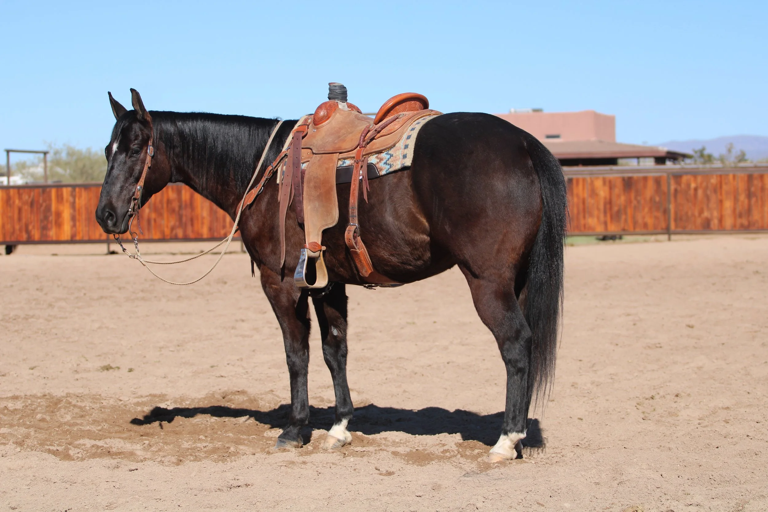 NOT RUF AT ALL who won the triple crown of reining. Standing right at 15 hands and 1200 pounds, this coming 6 year old is a super quiet and willing learner that has excelled at everything he has been introduced to. He has impeccable ground manners and is a perfect gentleman to clip, shoe, load, haul and catch in the pasture. Tyson came from a reining background so is super broke with perfect lead changes, spins and stops and gets along with other horses in all situations. He side passes to the mounting block or a fence for easy mounting and stands patiently. He’s been ridden and enjoyed by a 73 year old man at team roping and all phases of arena riding in groups or alone. He stand in the box quiet, runs flat and rates excellent as a head horse. The wife has used him for trail riding in the desert and trail obstacle challenges. He would excel at Versatility Ranch Horse, Ranch Riding, Roping (head horse) or as a Ranch or Trail Horse.