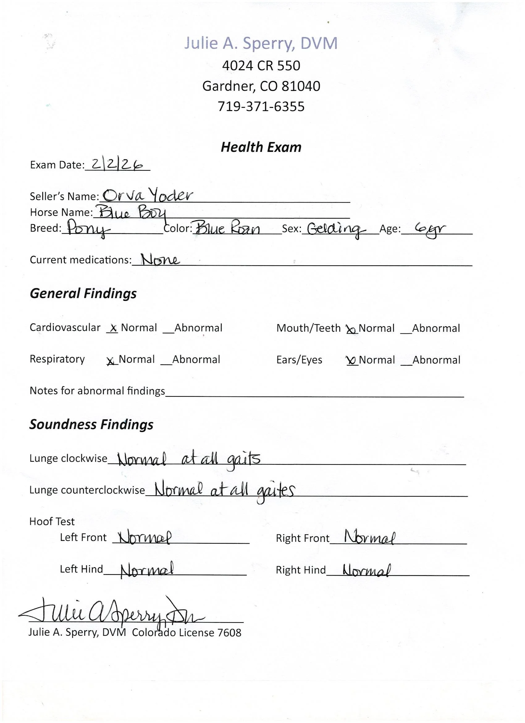 He has passed all veterinary and soundness exams and is up to date on shoes, shots, worming and dental.