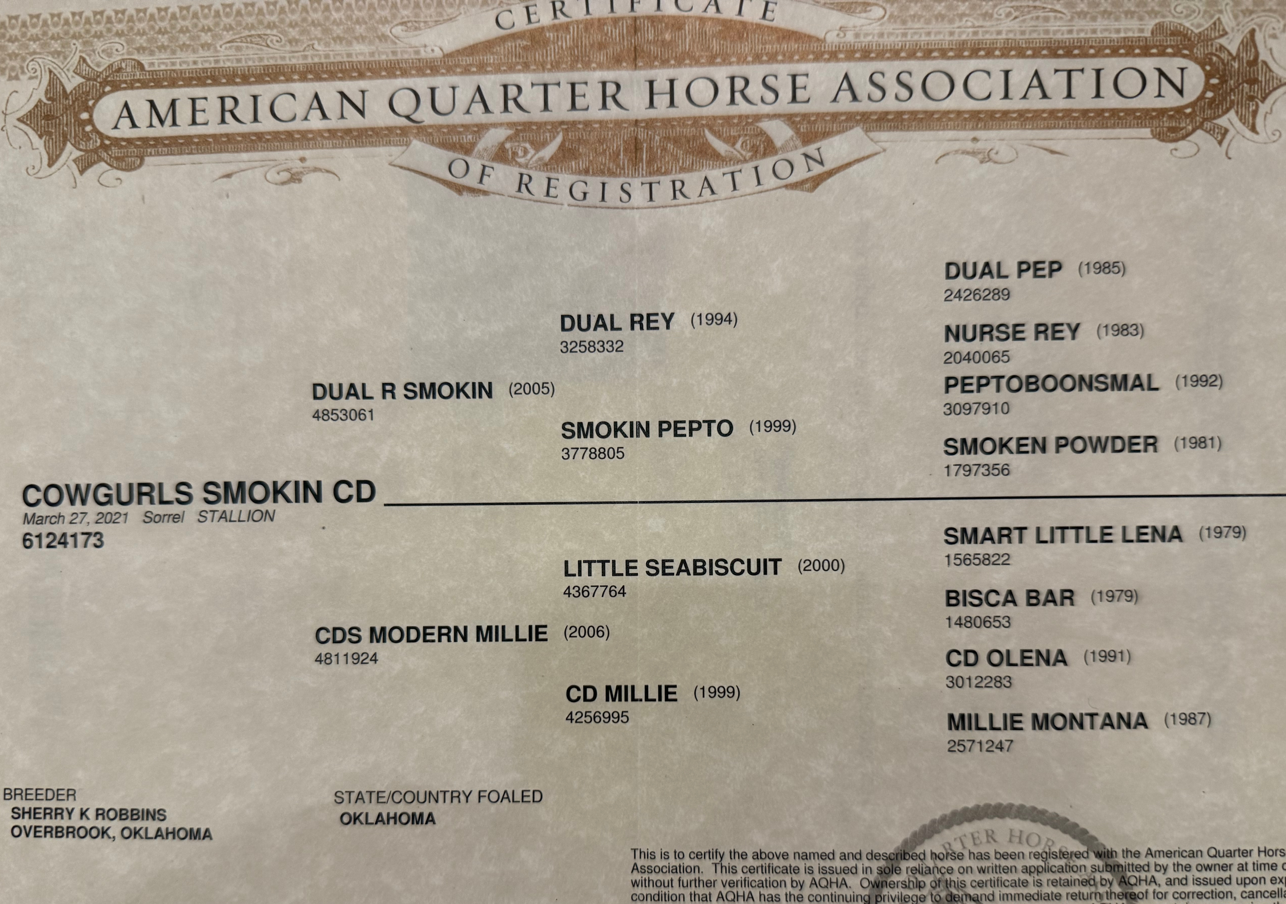 Introducing “Bourbon,” the 2025 Houston Livestock Show & Rodeo AQHA Junior Heeling Champion and a 2025 American Quarter Horse Association World Show Qualifier in Junior Heeling. Bourbon has also been hauled extensively and has earned money at local jackpots, proving his consistency and competitiveness outside the big pen. Bourbon began his foundation in our cow horse program before transitioning seamlessly to the roping arena. If you’re looking for a quality heel horse or breakaway prospect, he is the ideal size with the athleticism, mind, and ability to get the job done. His pedigree speaks for itself. Bourbon’s siblings have earned nearly $2,000,000 across multiple events. His sire, Dual R Smokin, is an accomplished performer with over $220,000 in earnings, and his proven cross on CDs Modern Millie has produced four full siblings—all money earners that have excelled in their respective disciplines.