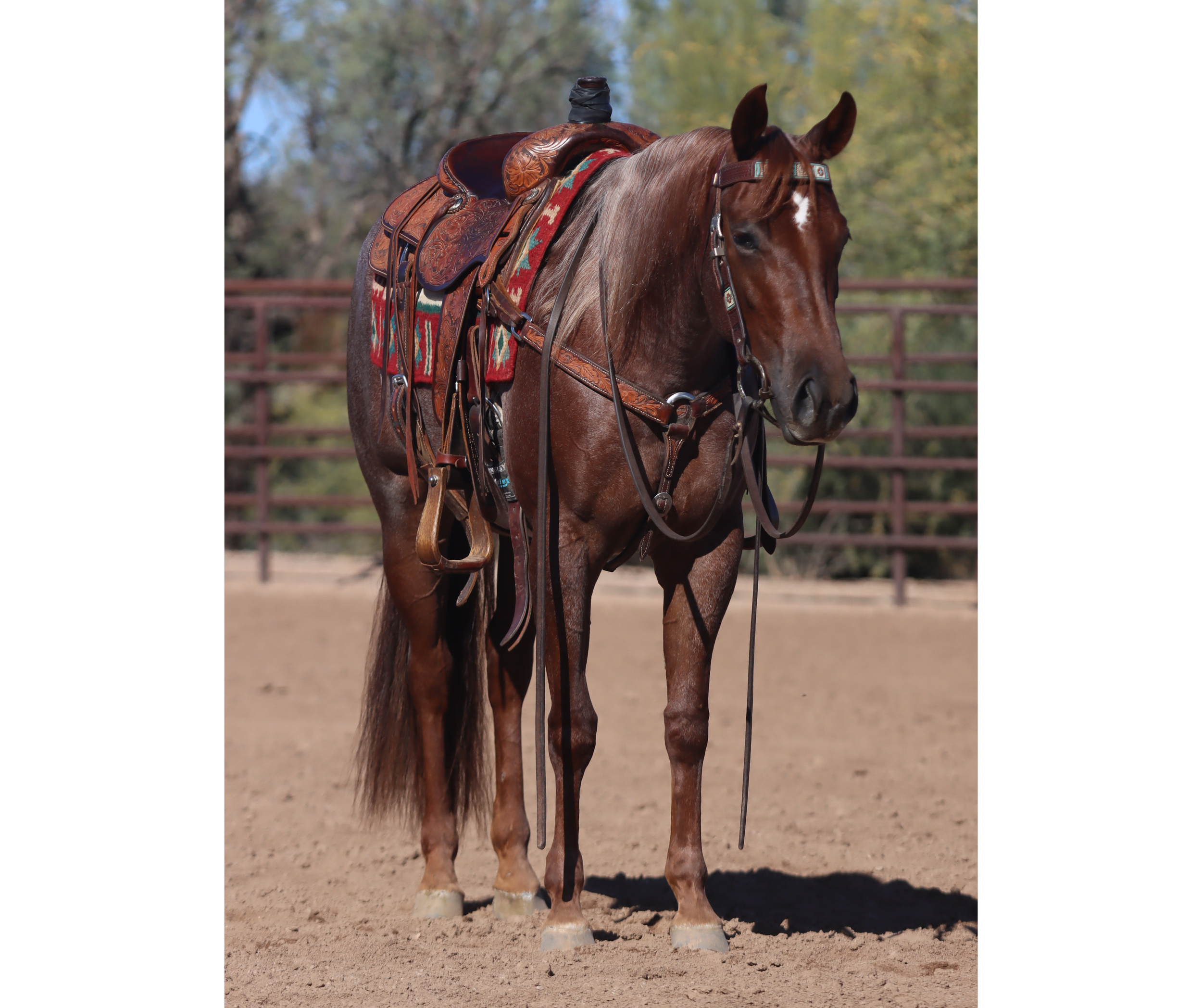 Diamond is a once in a lifetime horse! You will rarely find another one like him! He can compete at the highest level in team roping (either end) and breakaway. He is also so solid, honest, kind and safe, he can teach young children how to rope. You can brand calves on him, rope bulls, or catch wild cattle and horses. He will stand tied all day, or eat grass on the lawn while your youngster climbs all over and under him. He’s great for your in-laws to trail ride, or gather cattle on. There’s nothing he hasn’t done on the ranch, on the trail , and in the arena. Diamond has absolutely no vices or bad habits. He is beautiful and has excellent conformation. He is also an athlete and has his foundation in reining. He is very smooth to ride, even when he is running full tilt. Diamond is a big horse standing 15.3 has a heart to match. He is as sweet as can be and a pleasure to be around. We are truly proud to offer this diamond to you for his forever home.