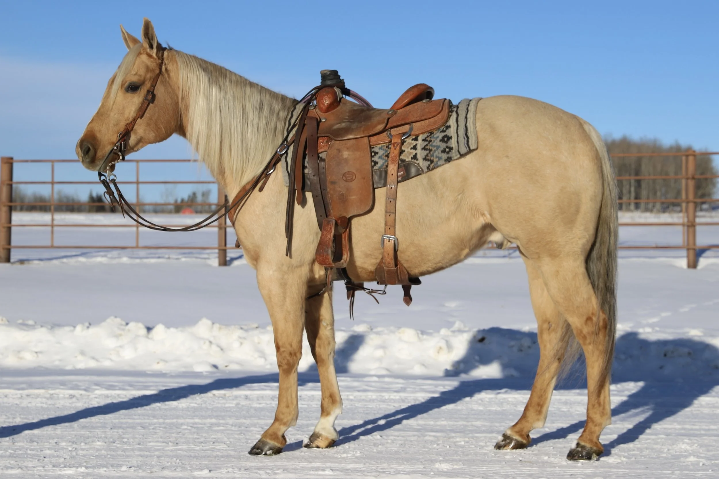 Hank is a pretty 6 year old palomino gelding standing 14.2 HH. He is quick on his feet and is a super nice heel horse with plenty of run, rate, and scores good. He has been hauled quite a bit but is not a beginners horse. He was used in hunting camp packing in the Colorado mountains and gathering cows as well as dragging calves in the branding pen. He works great for ranch rodeos, pasture roping, or just loping around for fun. He’s good to wash, shoe, and haul.